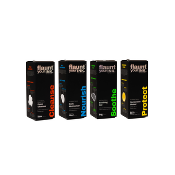 2. Apply Sunscreen Religiously: UV rays are the number one enemy of tattoos. Use sunscreen with SPF50+ and broad-spectrum protection every time your tattooed skin is exposed to sunlight. Ingredients like Tinsorb S, Uvinul A+, and antioxidants provide superior protection and help maintain your tattoo’s color.