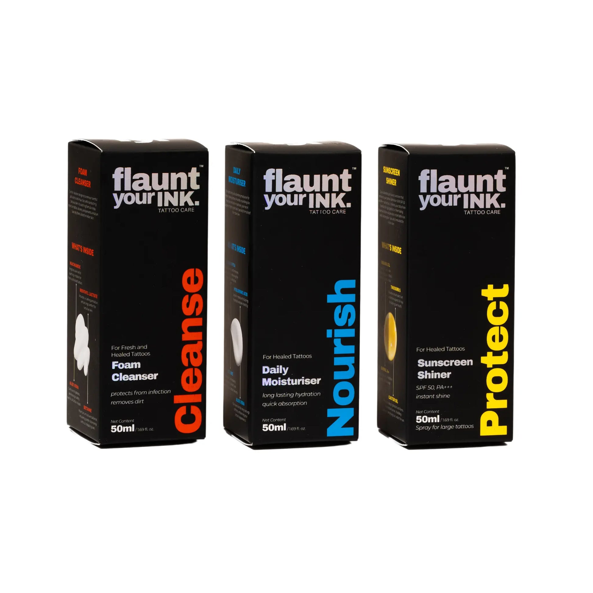 Includes Foam Cleanser, Daily Moisturiser, And Sunscreen Shiner To Gently Cleanse, Deeply Hydrate, And Shield Tattoos From Sun Damage.