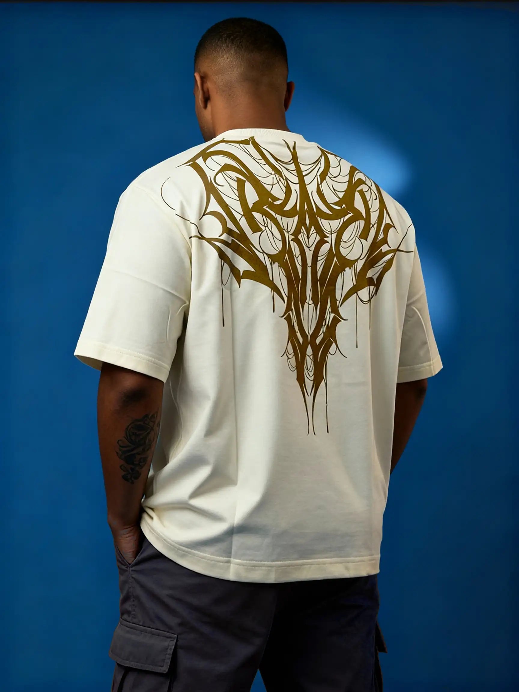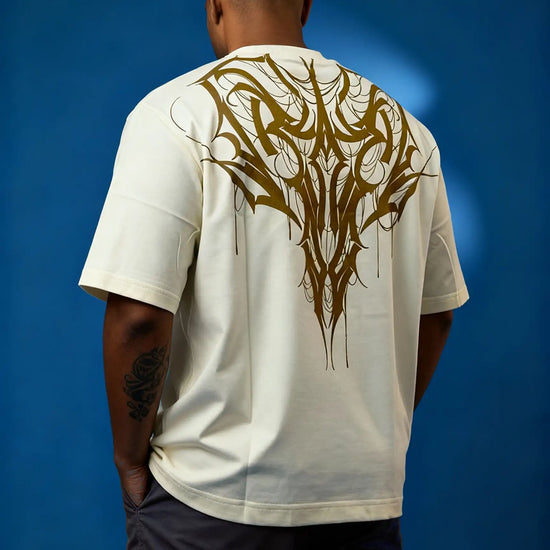 Striking full-back tribal print in metallic gold